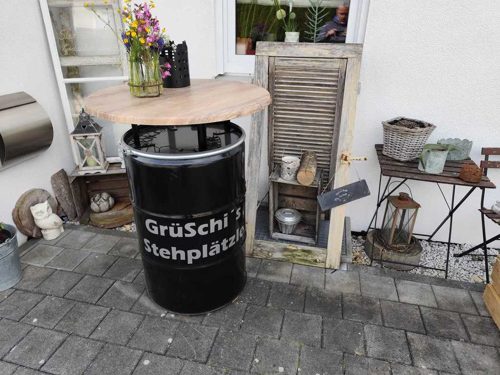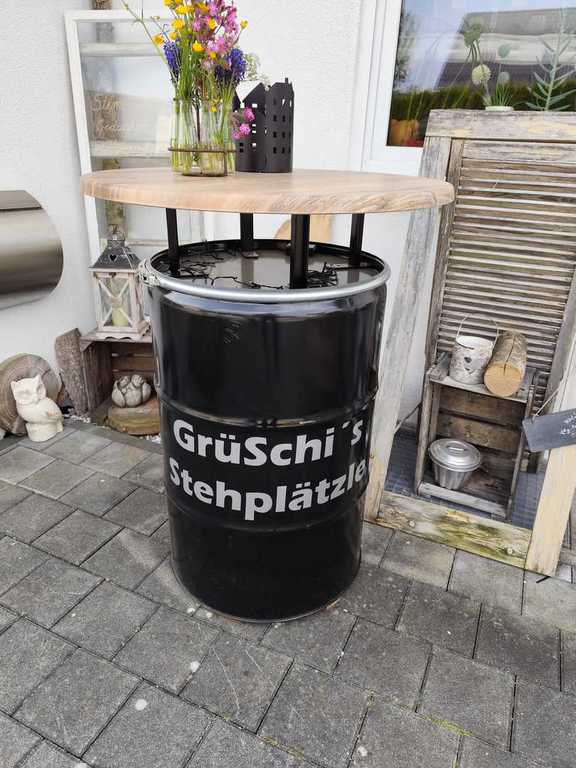 Unsere Stehtische bestehen aus einem robusten 200 l Stahl-Fass mit montierter Tischplatte.